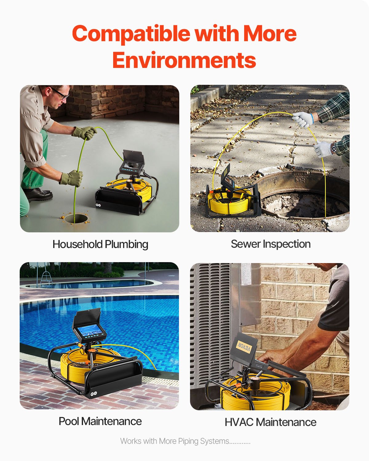 Sewer Camera, Pipe Drain Inspection Camera With DVR Function And LED Lights, Waterproof IP68 Borescope, Industrial Endoscope For Home Wall Duct Drain Pipe Plumbing Without Wheels